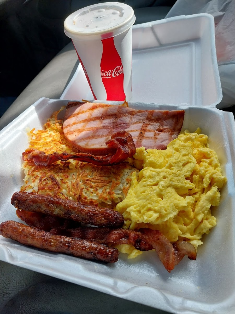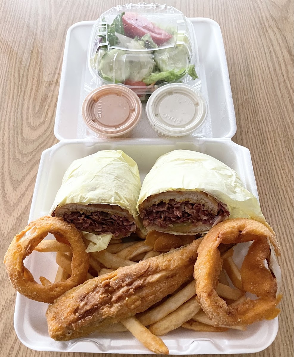 Portions are very generous, which is a recurring theme whether you’re ordering one of the big combo meals or breakfast scramblers. Items like the pastrami dinner and chicken tenders come with sizable sides such as fries, onion rings, salad, and even fried zucchini, offering a balanced mix of flavors and textures. Guests often find themselves sharing meals or taking leftovers home, which speaks to the volume you get for the price.